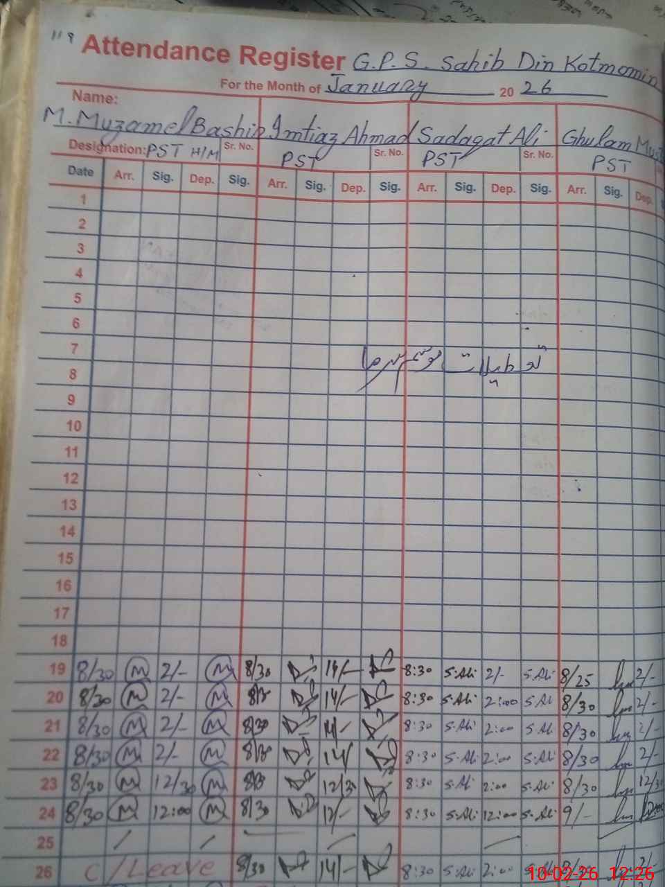 | Name: MU**** MU**** BA**** Designation: (School Headmaster's/Headmistress's) PST Phone/Cell Number: 03**** |