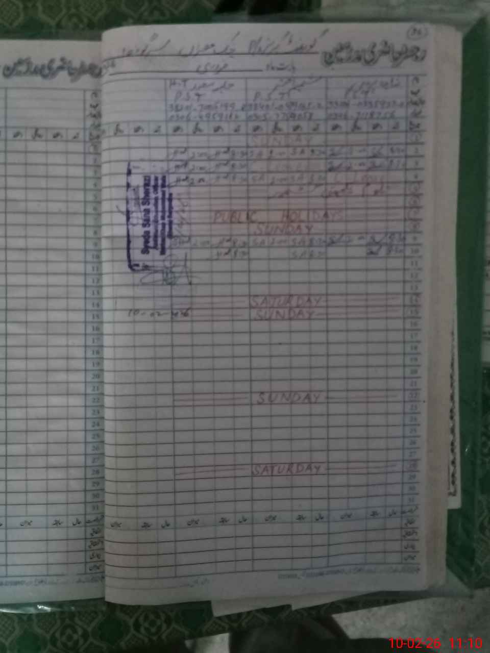 | CNIC | Full Name | Designation | R/C | Absence During Last Calender Month |