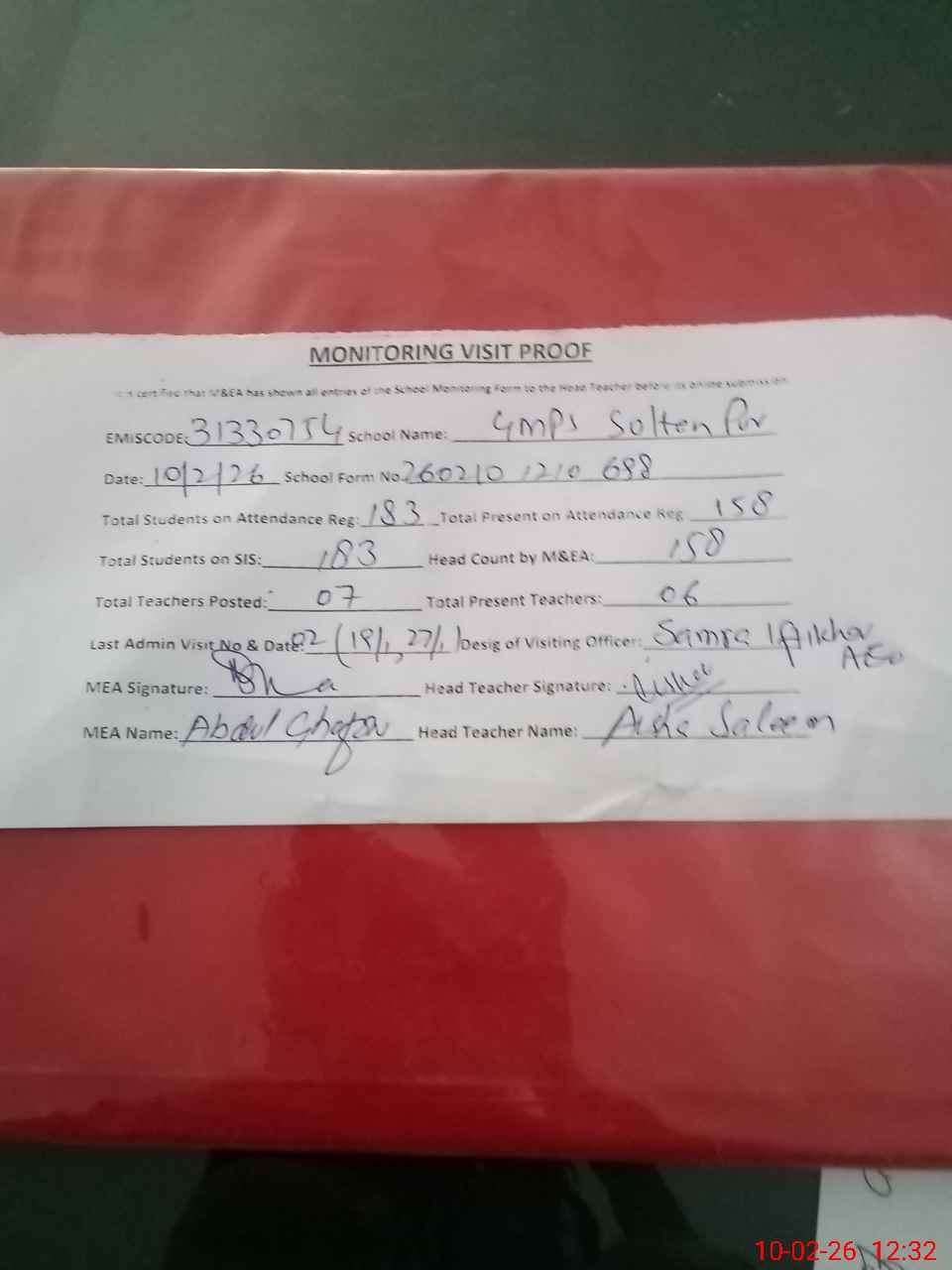 | EMIS Code: 31330754 | Name of School: GMPS SULTAN PUR | |||