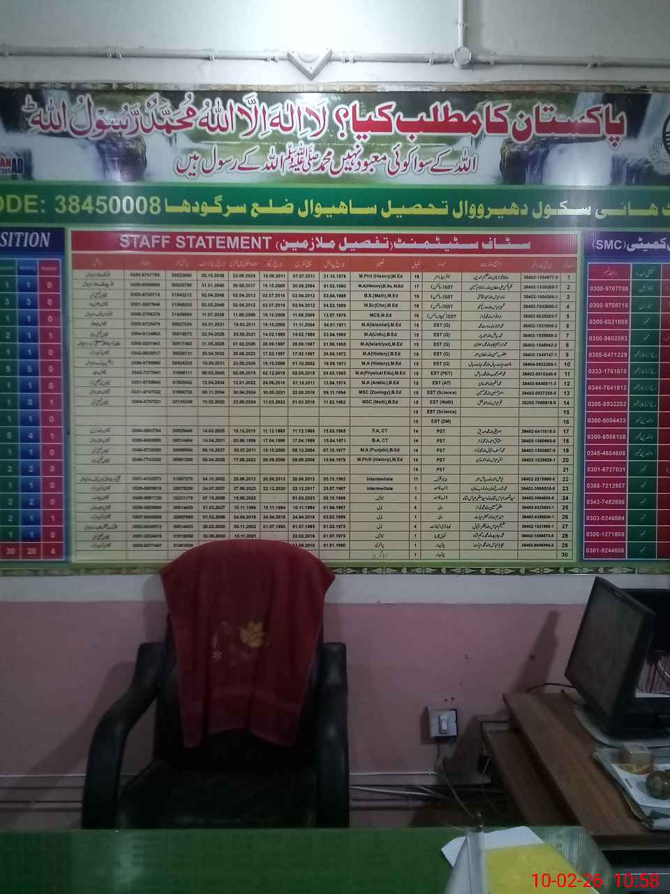 | Name: HA**** MU**** IR**** Designation: (School Headmaster's/Headmistress's) HEAD MASTER Phone/Cell Number: 03**** |