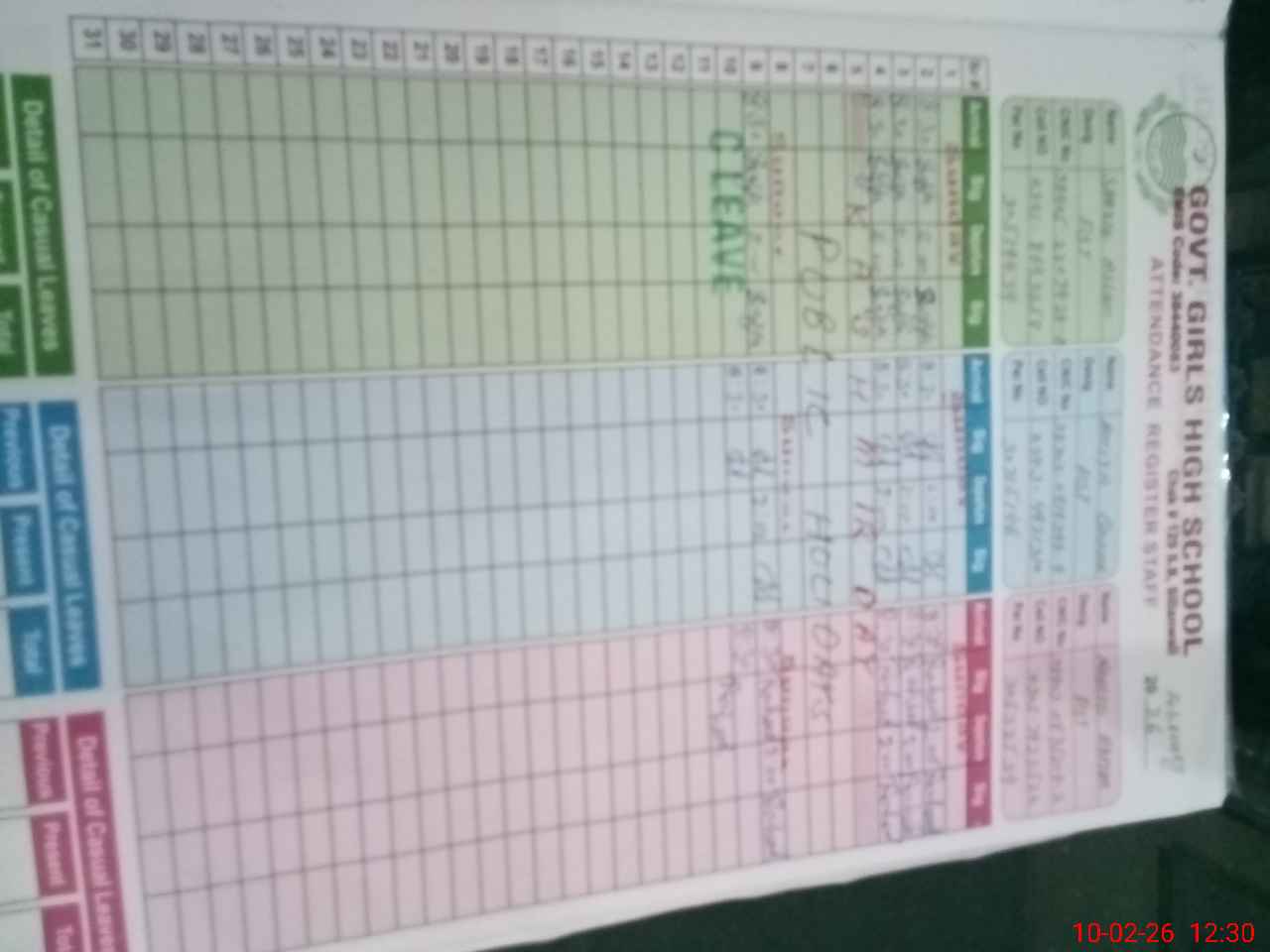 | CNIC | Full Name | Designation | R/C | Absence During Last Calender Month |