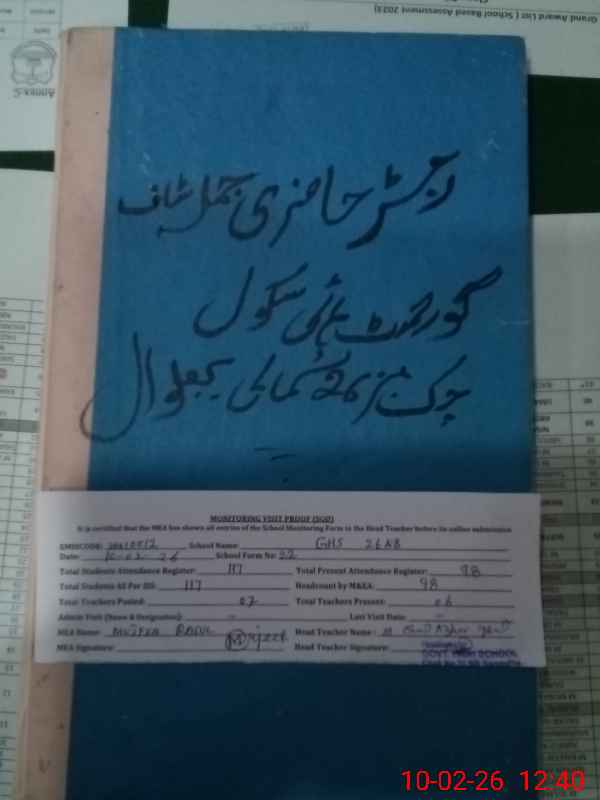 | EMIS Code: 38410012 | Name of School: GHS CHAK NO.26 NB | |||