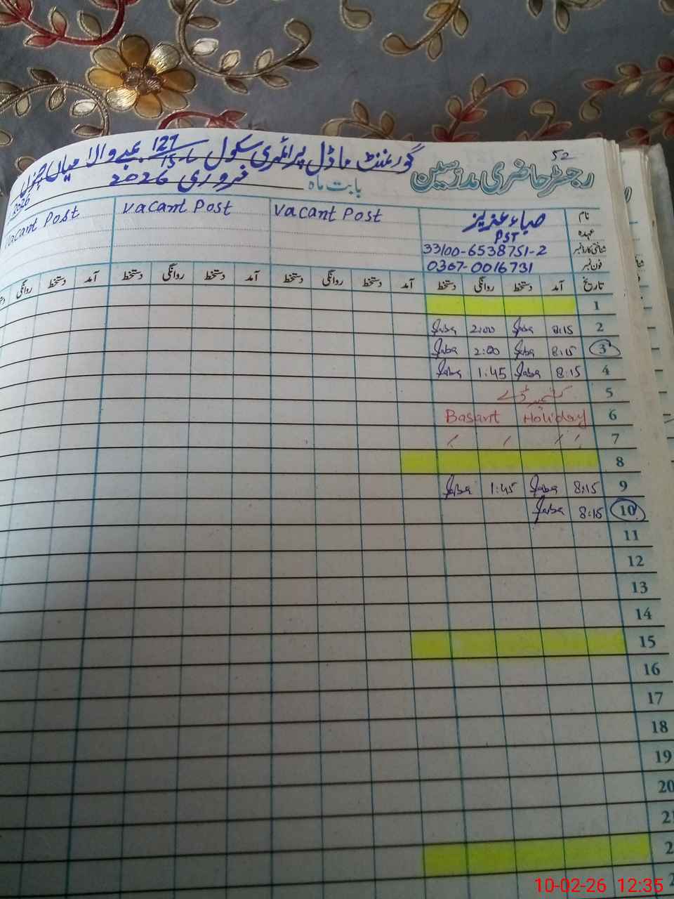| Name: Sa**** Az**** Designation: (School Headmaster's/Headmistress's) PST Phone/Cell Number: 03**** |