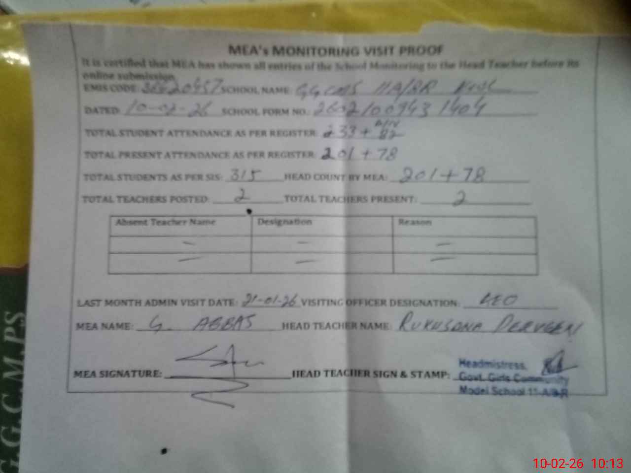 | EMIS Code: 36420457 | Name of School: GGCMS 11-A/8-R KACHA KHUH | |||