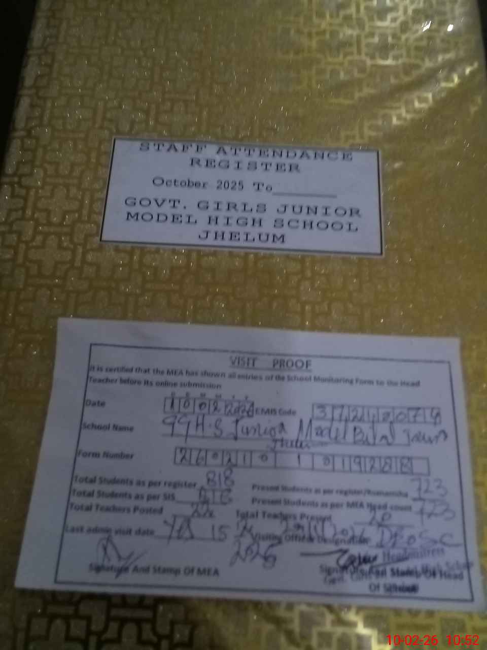 | EMIS Code: 37210074 | Name of School: GGHS JUNIOR MODEL BILAL TOWN JHELUM | |||