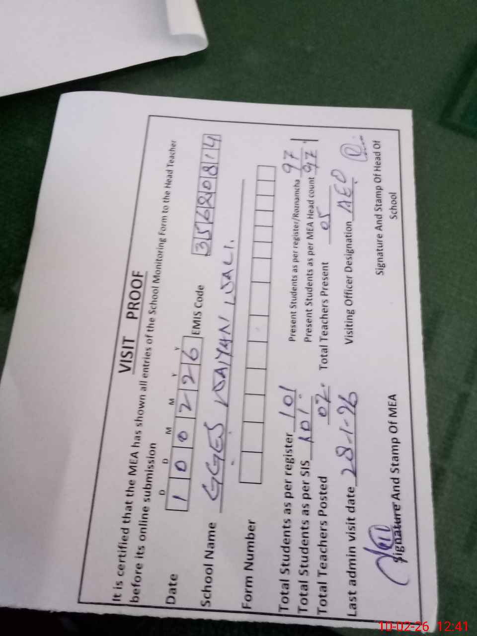 | Certified that this School was Inspected by the Undersigned MEA/DMO Today and the Information Stated Above is as Per Record. | |||||