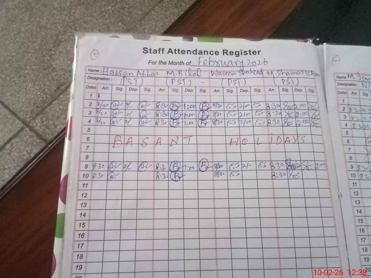 | CNIC | Full Name | Designation | R/C | Absence During Last Calender Month |