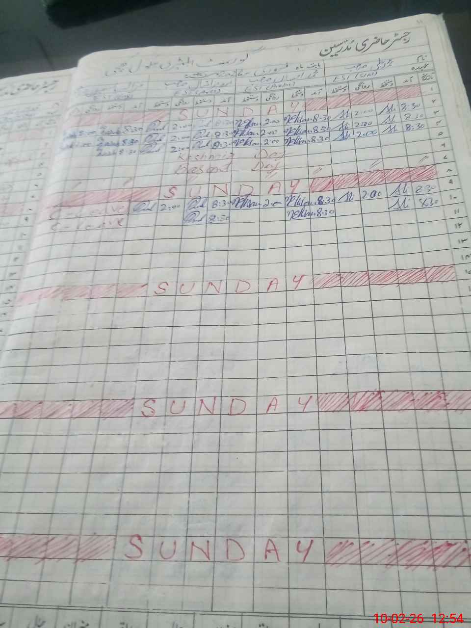 | CNIC | Full Name | Designation | R/C | Absence During Last Calender Month |