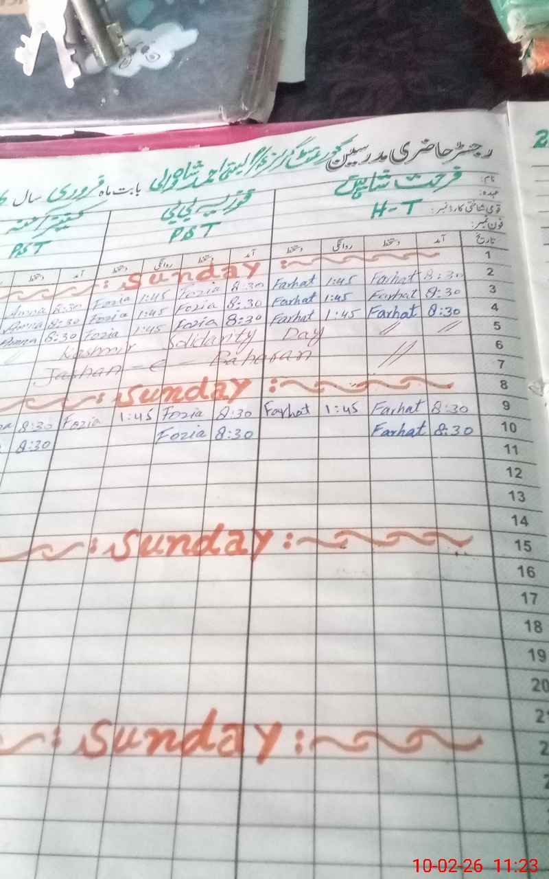| Name: FA**** HA**** SH**** Designation: (School Headmaster's/Headmistress's) PST Phone/Cell Number: 03**** |