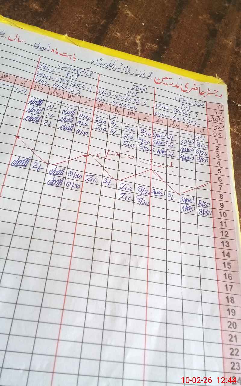 | Name: Sh**** Ab**** Designation: (School Headmaster's/Headmistress's) PST Phone/Cell Number: 03**** |