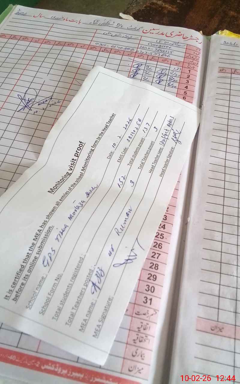| Attendance Register | Head Teacher | MEA with School | Visit Proof |