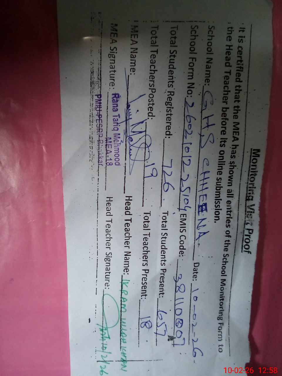 | EMIS Code: 38110007 | Name of School: GHS CHHINA | |||