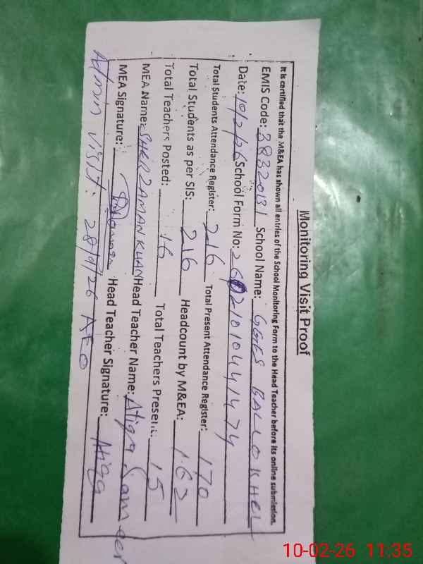 | EMIS Code: 38320131 | Name of School: GGES BALLO KHEL | |||