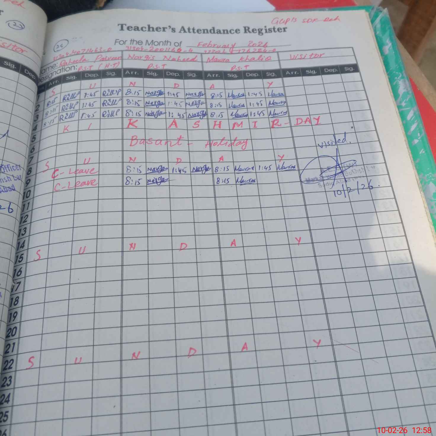 | CNIC | Full Name | Designation | R/C | Absence During Last Calender Month |