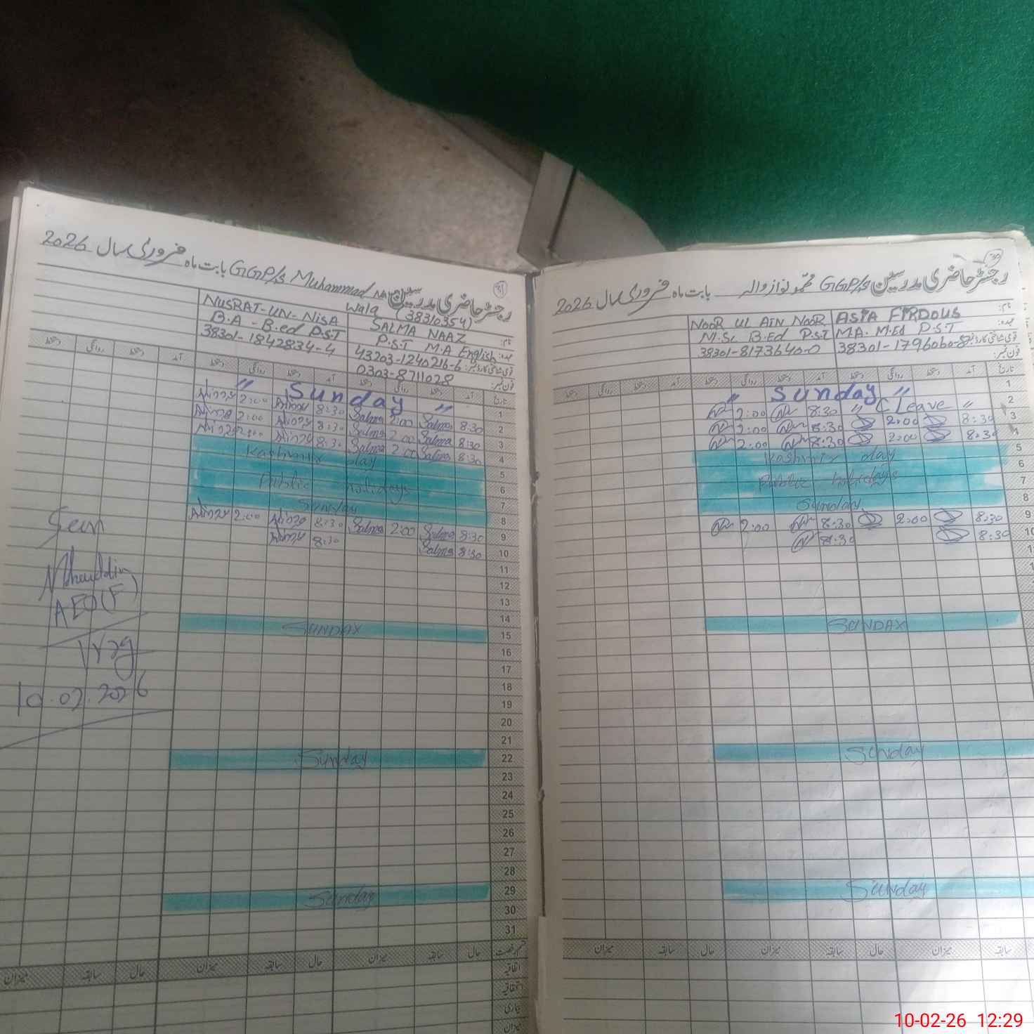 | Name: As**** Fi**** Designation: (School Headmaster's/Headmistress's) PST Phone/Cell Number: 03**** |