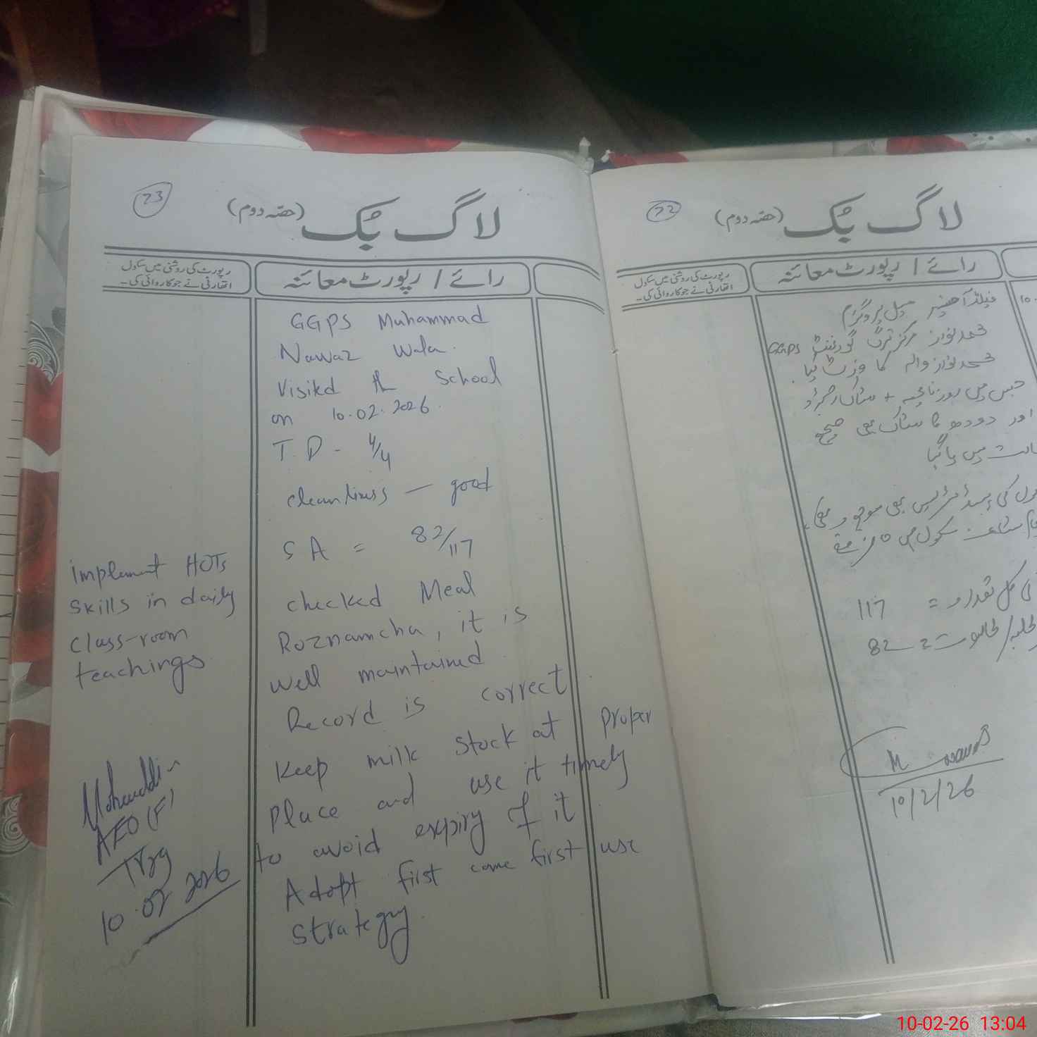 | Certified that this School was Inspected by the Undersigned MEA/DMO Today and the Information Stated Above is as Per Record. | |||||