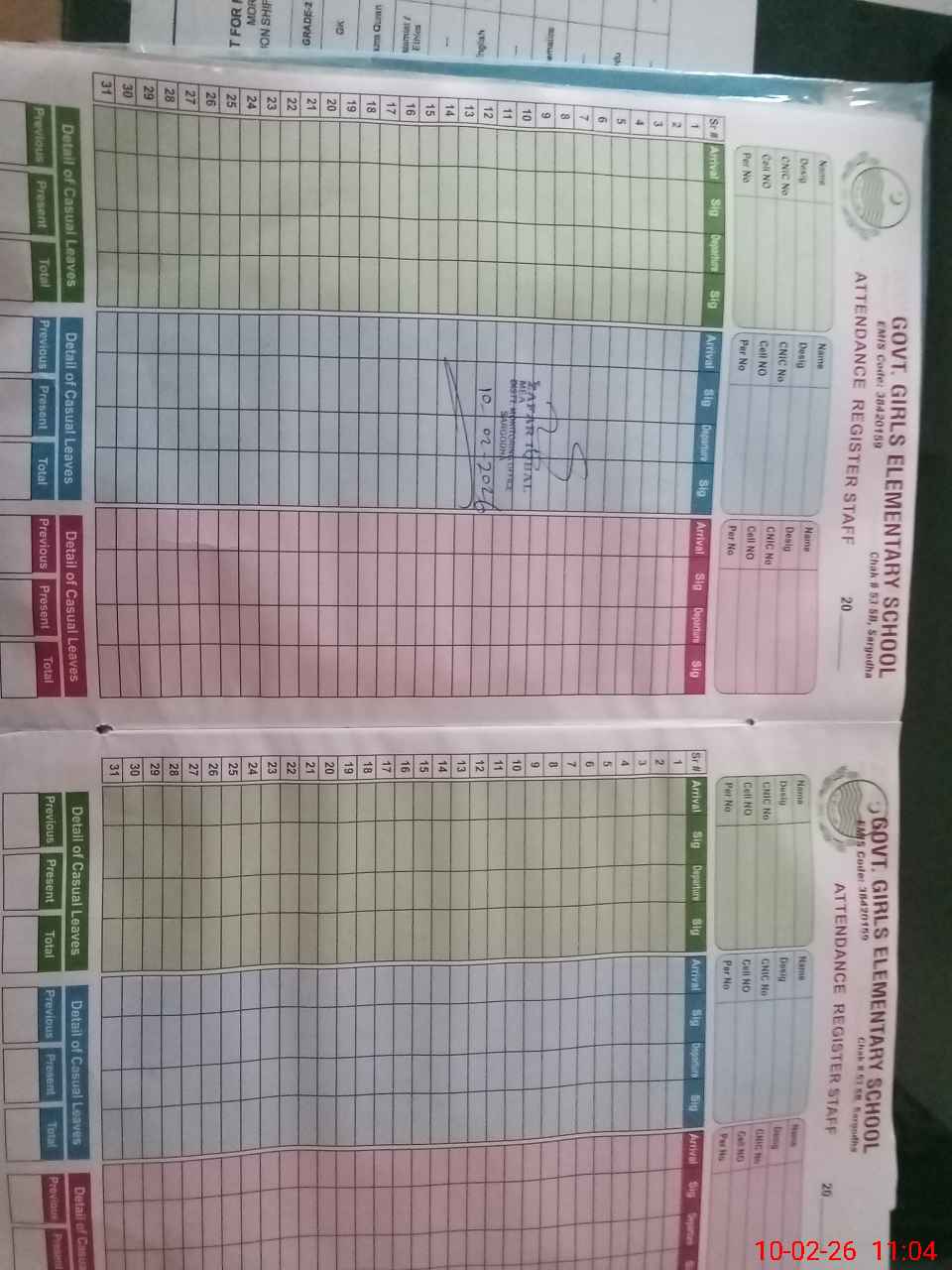 | CNIC | Full Name | Designation | R/C | Absence During Last Calender Month |