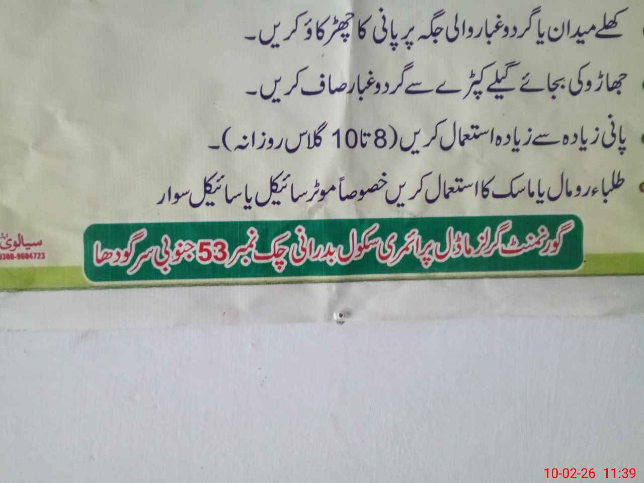 | EMIS Code: 38420524 | Name of School: GMPS CHAK NO.53 SB BADRANI | |||