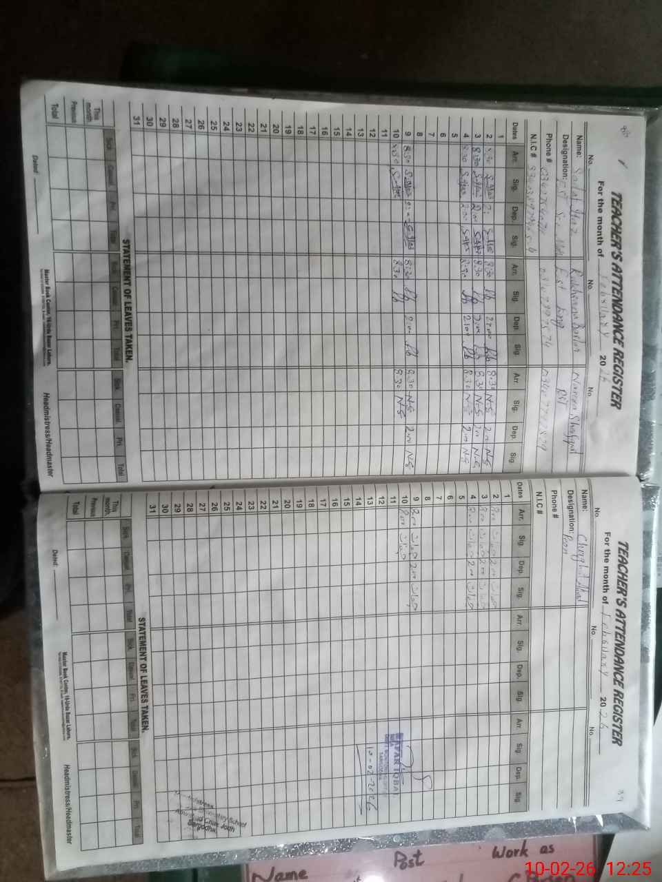 | CNIC | Full Name | Designation | R/C | Absence During Last Calender Month |