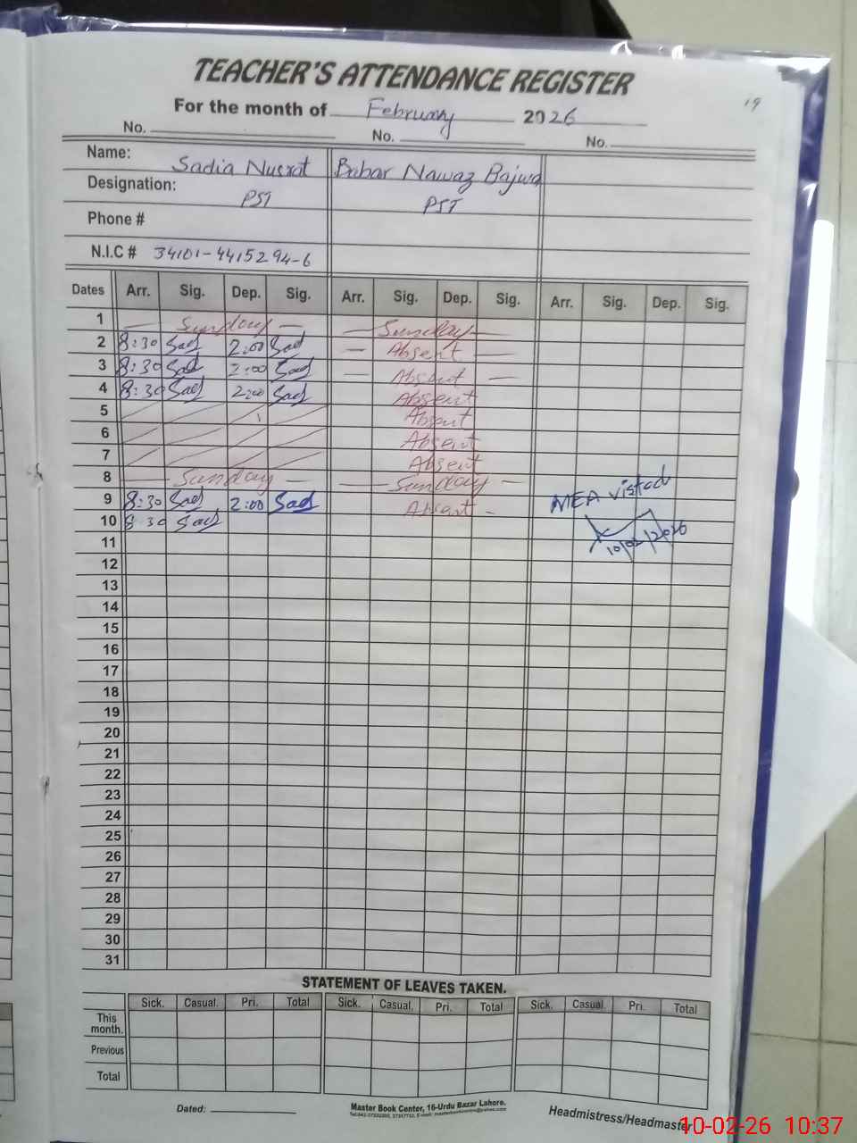 | Name: At**** Ra**** Ha**** Designation: (School Headmaster's/Headmistress's) PST Phone/Cell Number: 03**** |