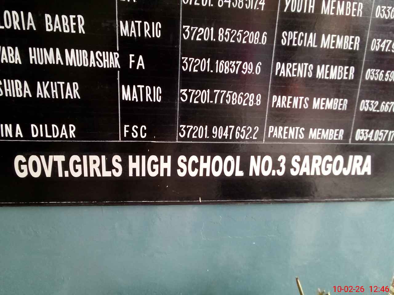 | Name: Ta**** Fa**** Designation: (School Headmaster's/Headmistress's) HEADMISTRESS Phone/Cell Number: 03**** |