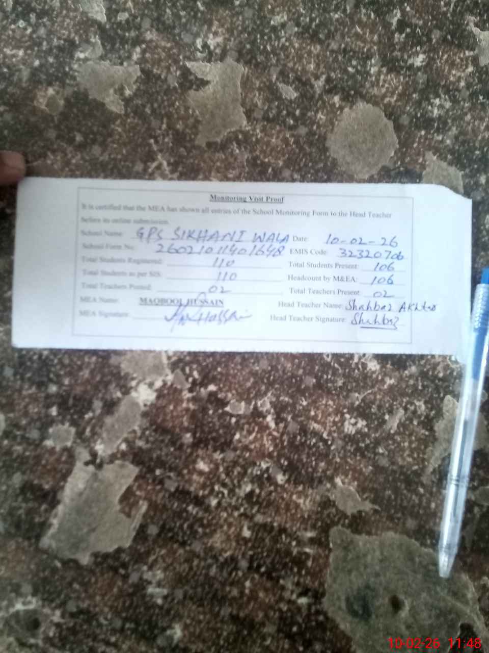 | EMIS Code: 32320706 | Name of School: GPS SIKHANI WALA | |||