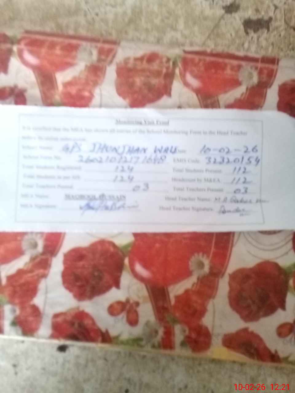 | EMIS Code: 32320154 | Name of School: GPS JHONJHAN WALI | |||