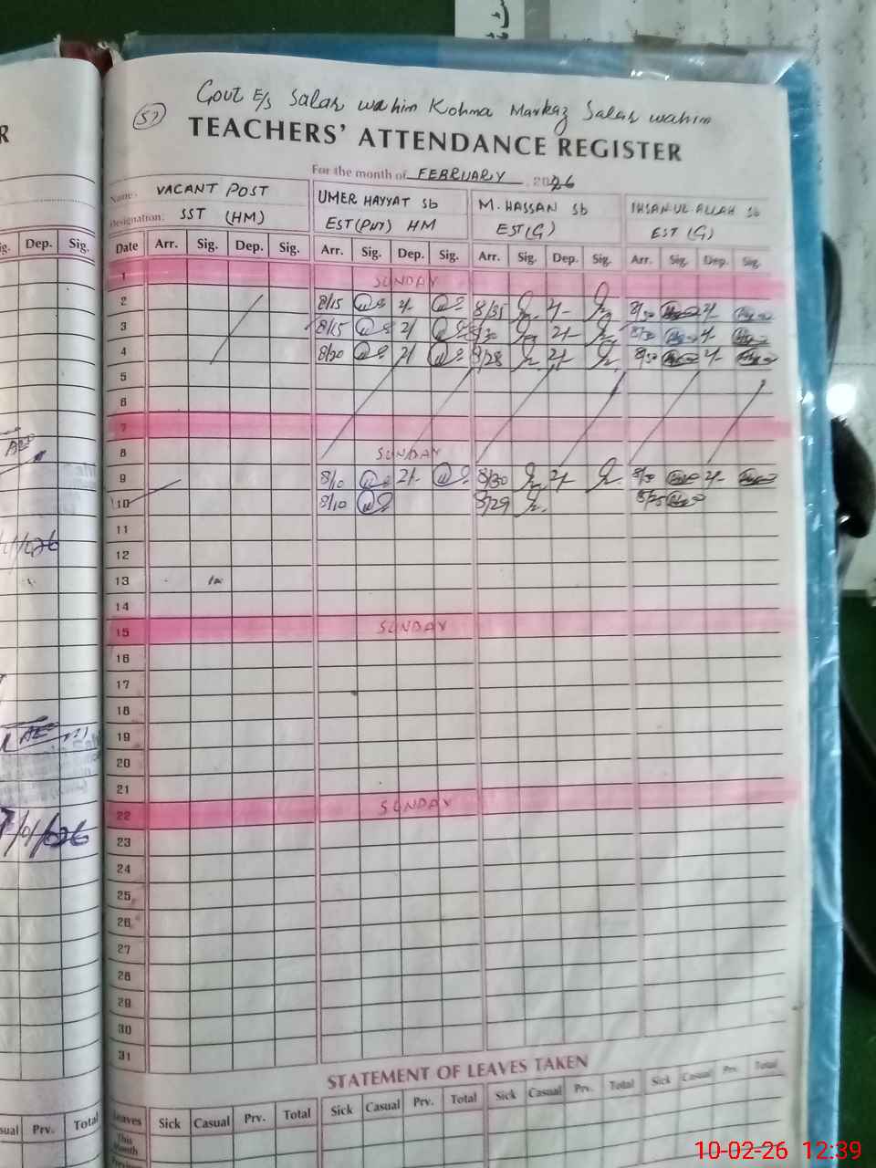 | Name: Um**** Ha**** Designation: (School Headmaster's/Headmistress's) Est Phone/Cell Number: 03**** |