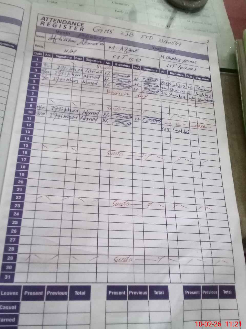 | CNIC | Full Name | Designation | R/C | Absence During Last Calender Month |