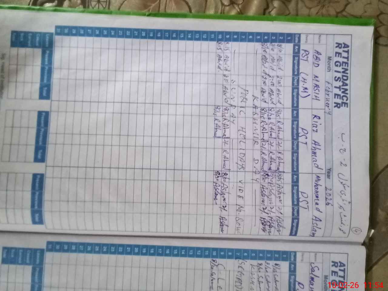 | CNIC | Full Name | Designation | R/C | Absence During Last Calender Month |