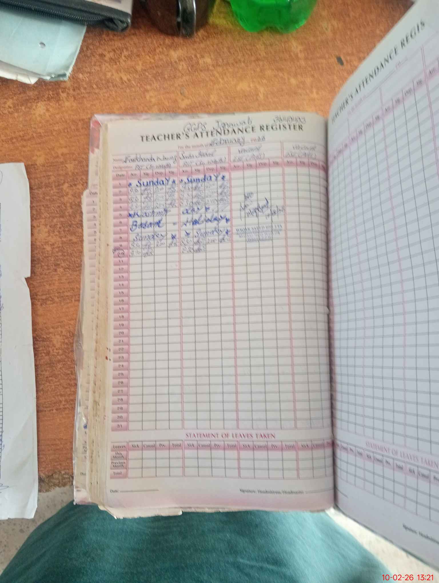 | Leave | Duty | Absent | Maternity | Medical | Ex- Pak |