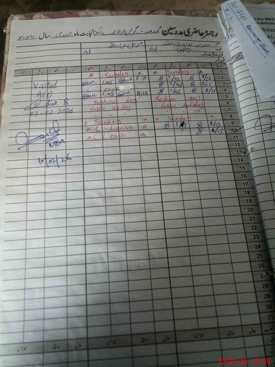 | CNIC | Full Name | Designation | R/C | Absence During Last Calender Month |