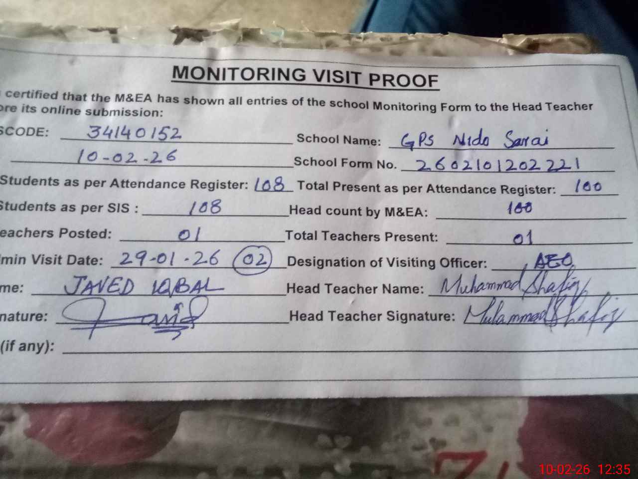 | Monitoring Date: 10-02-2026 | Start Time: 10-02-2026 12:01 PM | End Time: 10-02-2026 12:45 PM | Name of MEA: S-**** Iq**** Sh**** | |