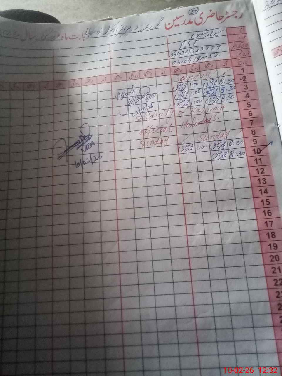 | Name: SY**** MU**** SH**** Designation: (School Headmaster's/Headmistress's) PST Phone/Cell Number: 03**** |