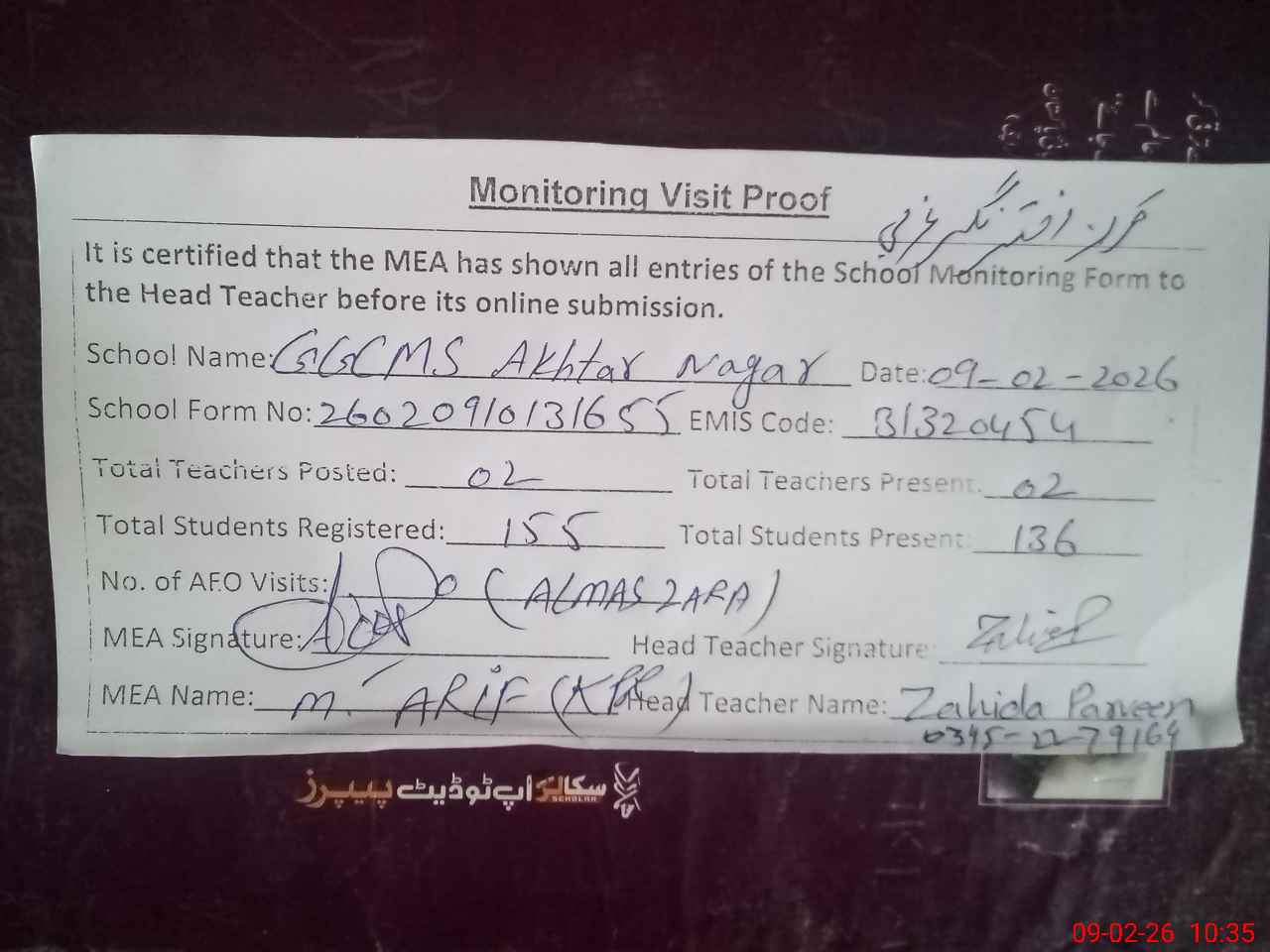 | EMIS Code: 31320454 | Name of School: GGCMS AKHTAR NAGAR | |||
