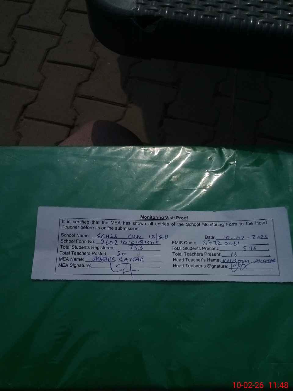 | EMIS Code: 39320061 | Name of School: GGHSS CHAK NO.18/G.D | |||