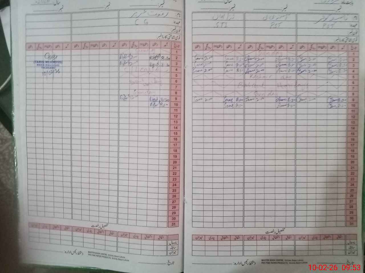 | CNIC | Full Name | Designation | R/C | Absence During Last Calender Month |