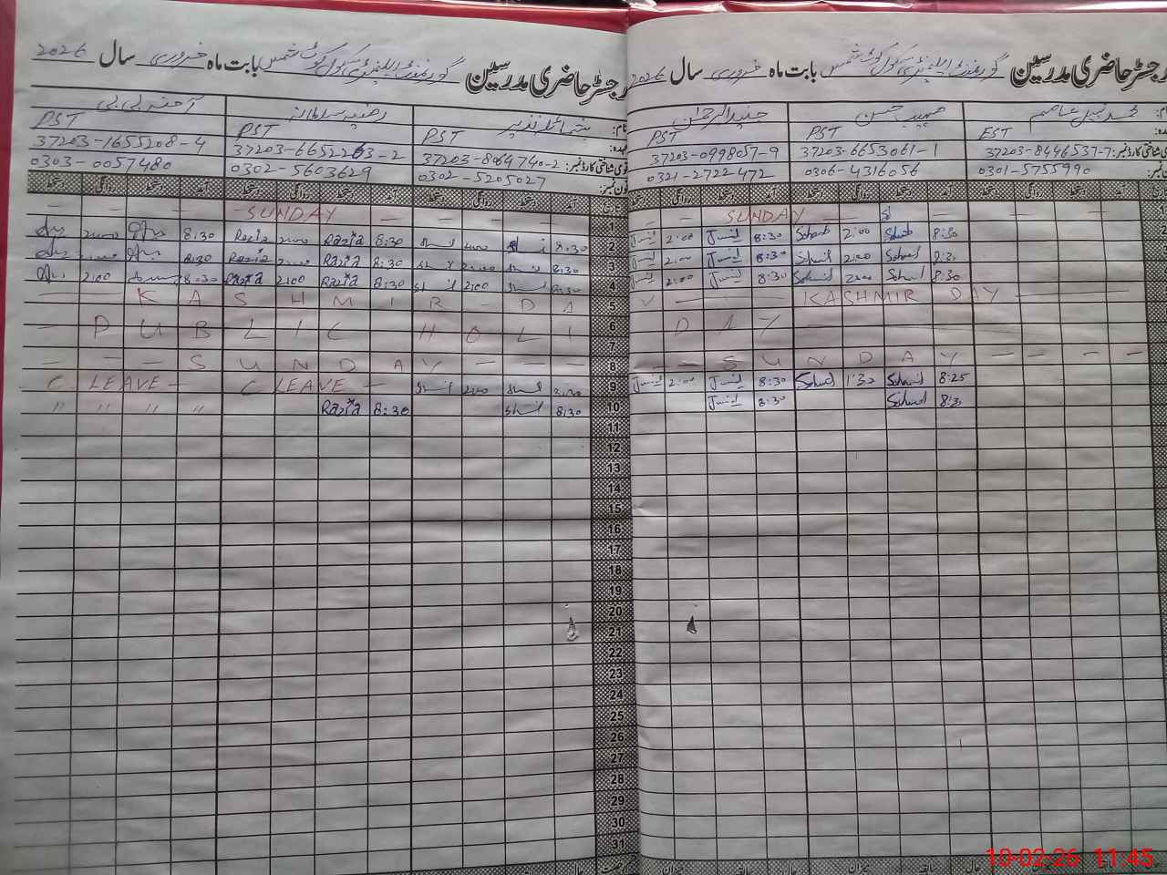 | CNIC | Full Name | Designation | R/C | Absence During Last Calender Month |