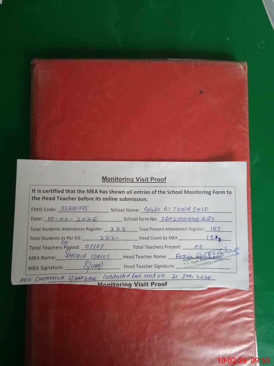 | Certified that this School was Inspected by the Undersigned MEA/DMO Today and the Information Stated Above is as Per Record. | |||||