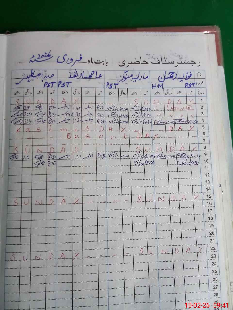 | 33**** | Pe**** Ak**** | PST Arts | Regular | 0 | 0 | 0 | 0 | 0 | 0 | 0 | 0 | 0 | Casual |