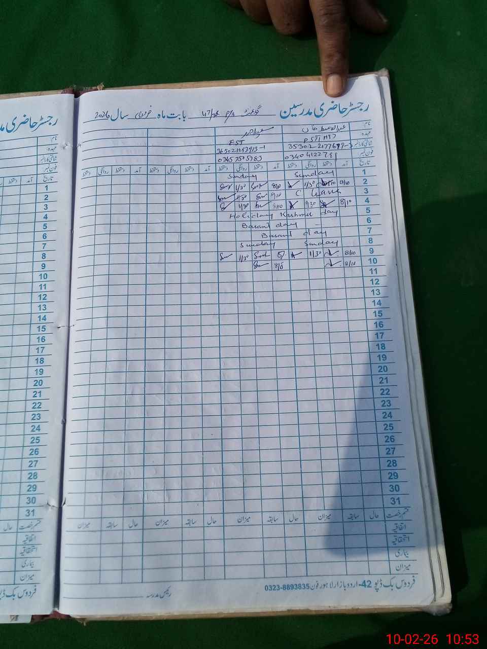 | CNIC | Full Name | Designation | R/C | Absence During Last Calender Month |