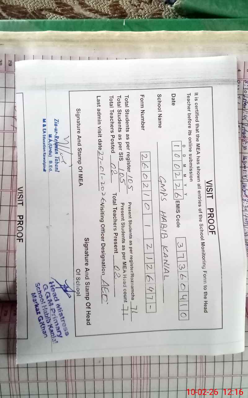 | EMIS Code: 37360410 | Name of School: GGPS HABIB KINAL | |||