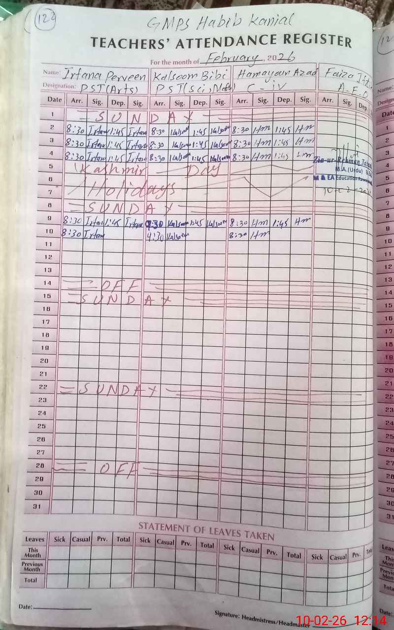 | Name: Ir**** Fe**** Designation: (School Headmaster's/Headmistress's) PST Phone/Cell Number: 03**** |