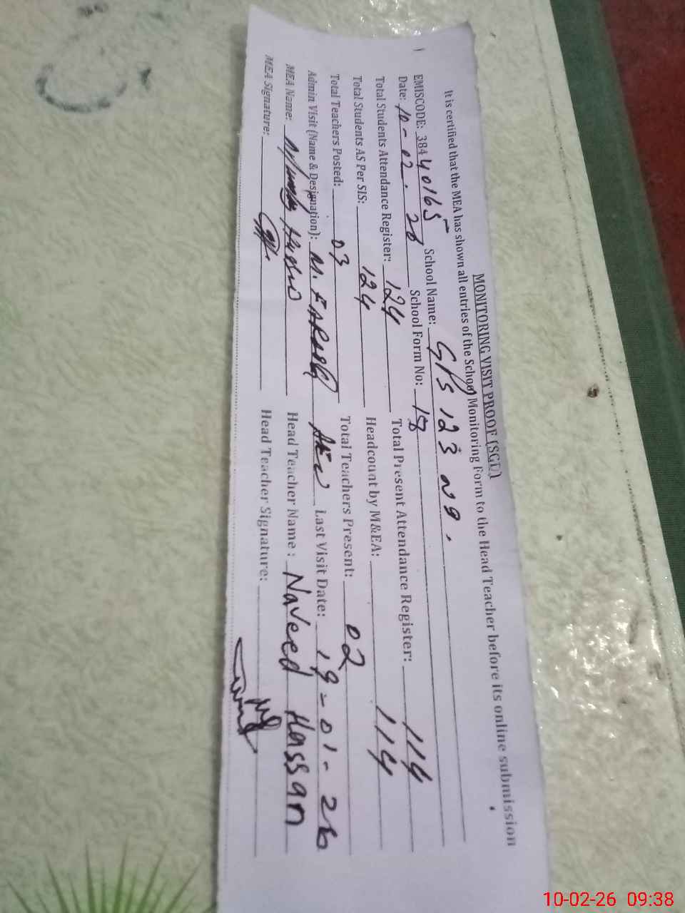 | EMIS Code: 38440165 | Name of School: GPS CHAK NO.123 NB | |||