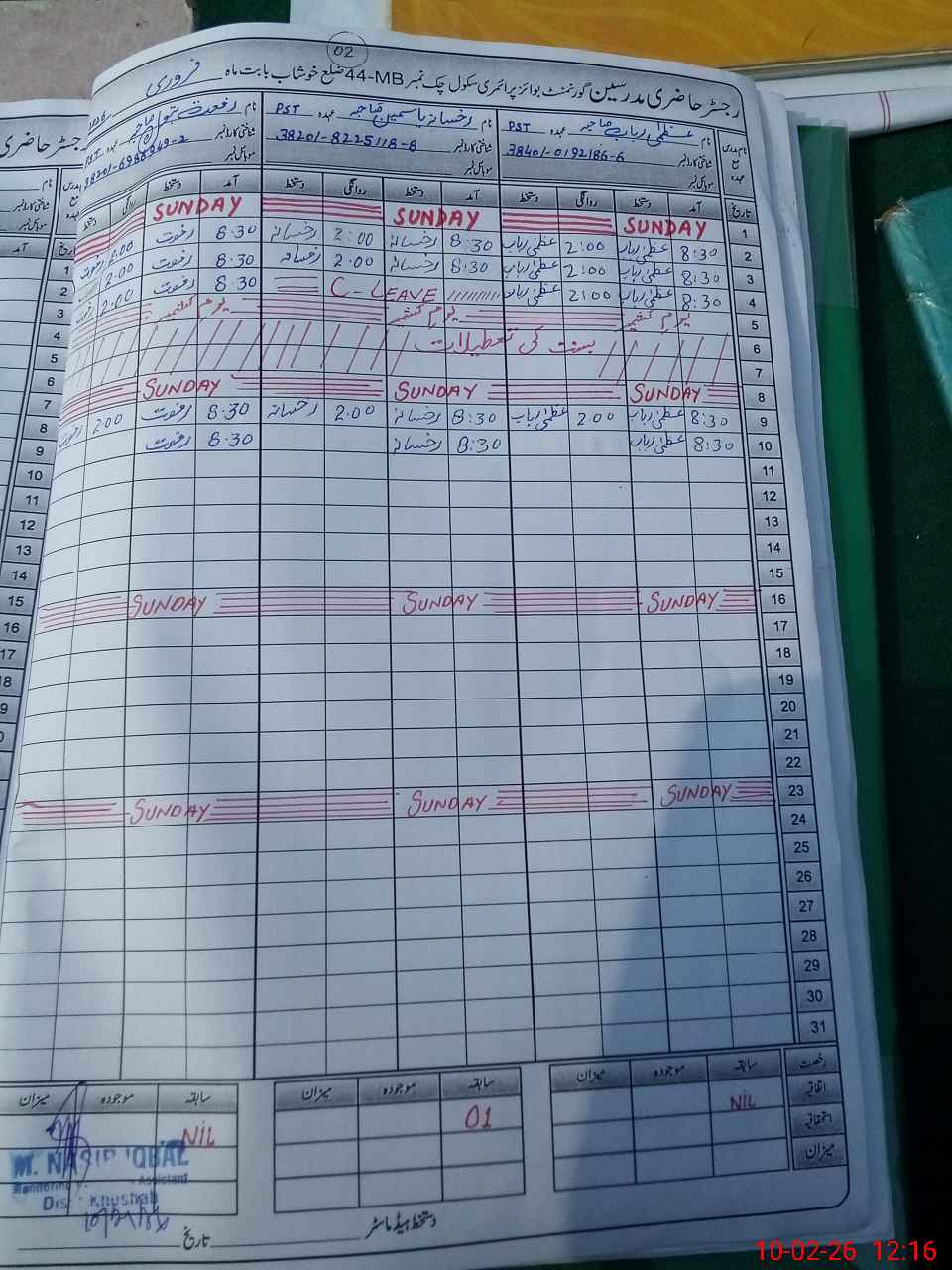 | Name: MU**** AQ**** Designation: (School Headmaster's/Headmistress's) PST Phone/Cell Number: 03**** |