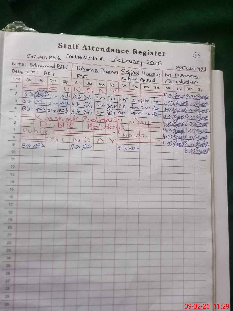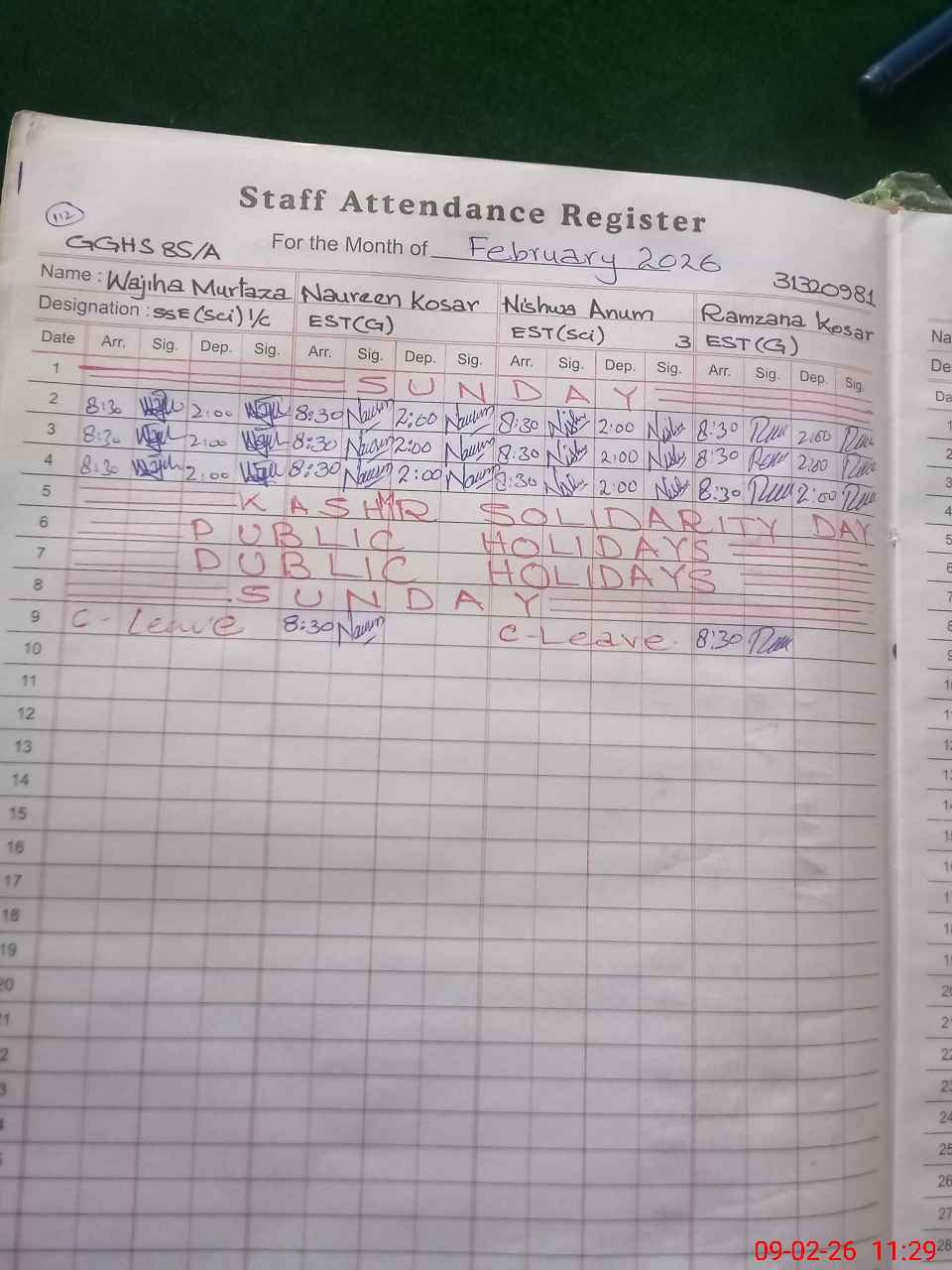 | 42**** | Wa**** Mu**** | SSE Physics/Maths | Contract | 0 | 0 | 0 | 0 | 0 | 0 | 0 | 0 | 0 | Absent (Un-Authorized) |