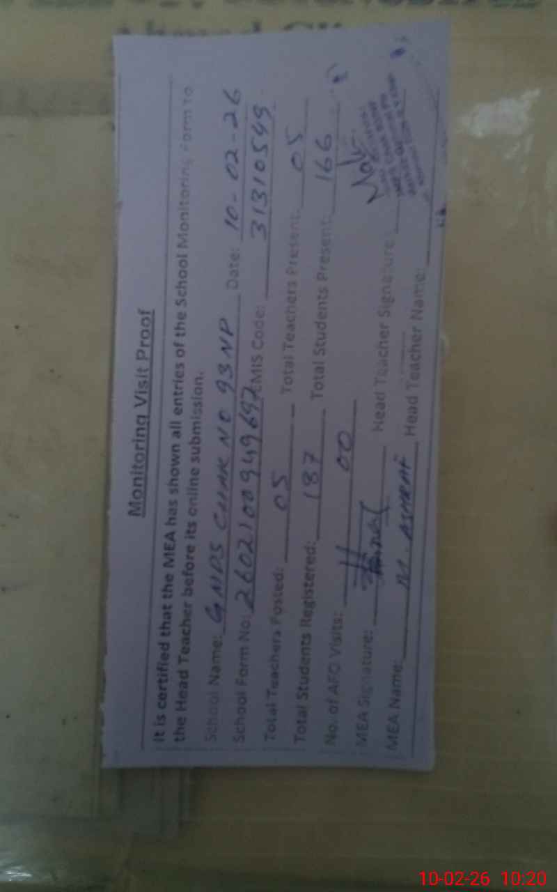 | EMIS Code: 31310549 | Name of School: GMPS CHAK NO. 93/NP (After Noon) | |||