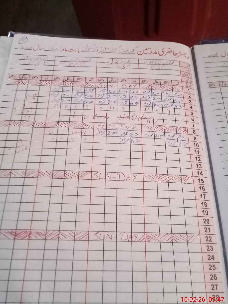 | 38**** | Ak**** Iq**** | CHOWKIDAR | Regular | 0 | 0 | 0 | 0 | 0 | 0 | 0 | 0 | 0 | Other |