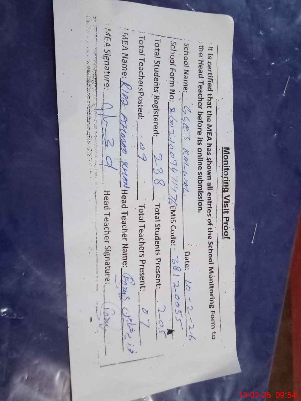 | Certified that this School was Inspected by the Undersigned MEA/DMO Today and the Information Stated Above is as Per Record. | |||||