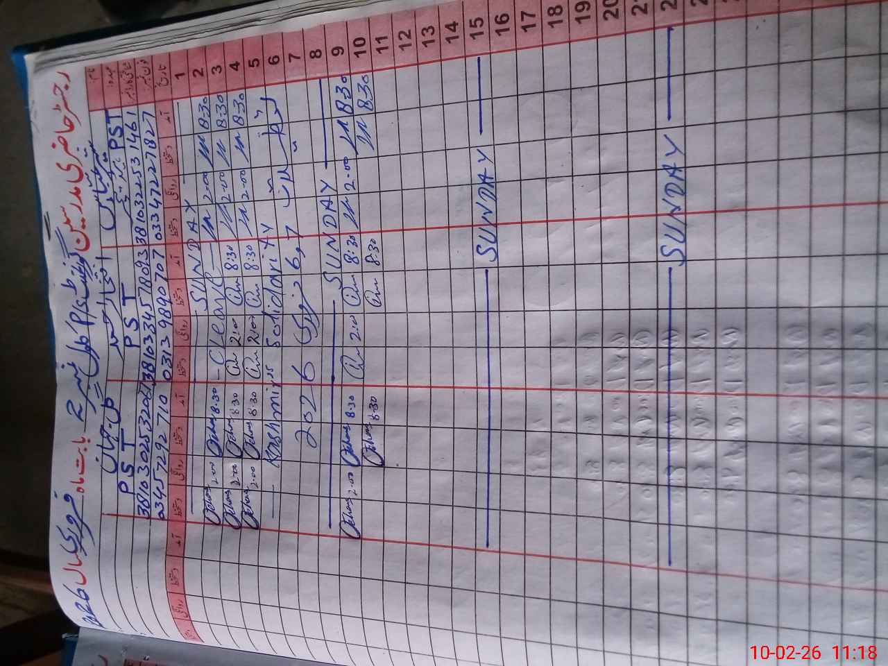 | CNIC | Full Name | Designation | R/C | Absence During Last Calender Month |